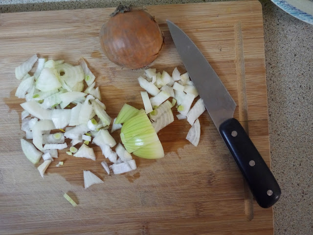 Then, throw in the diced onion.